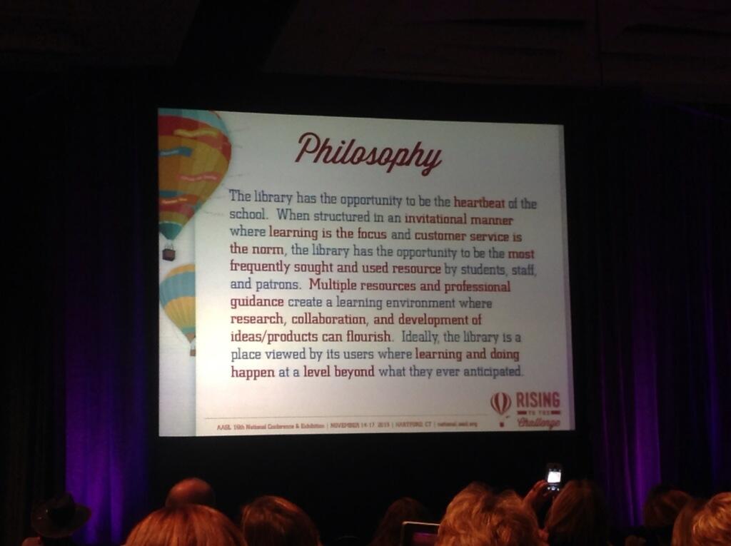 Can I do more as a media specialist? Absolutely, and I learned a lot in Hartford that I can use immediately. I attended sessions on collaboration, web 2.0 tools, eBooks, literacy research, high-achieving students, virtual learning commons, technology integration, MakerSpaces, and much more. I'm sure I will never meet this person who attacked our profession, but, at the end of the day, I don't do my job to prove people like him wrong; we choose and continue in our profession because we want to assist students and staff discover the joy of learning through any platform. We want them to be successful consumers, evaluators, and creators of information. It is not about us. I think that is true leadership.